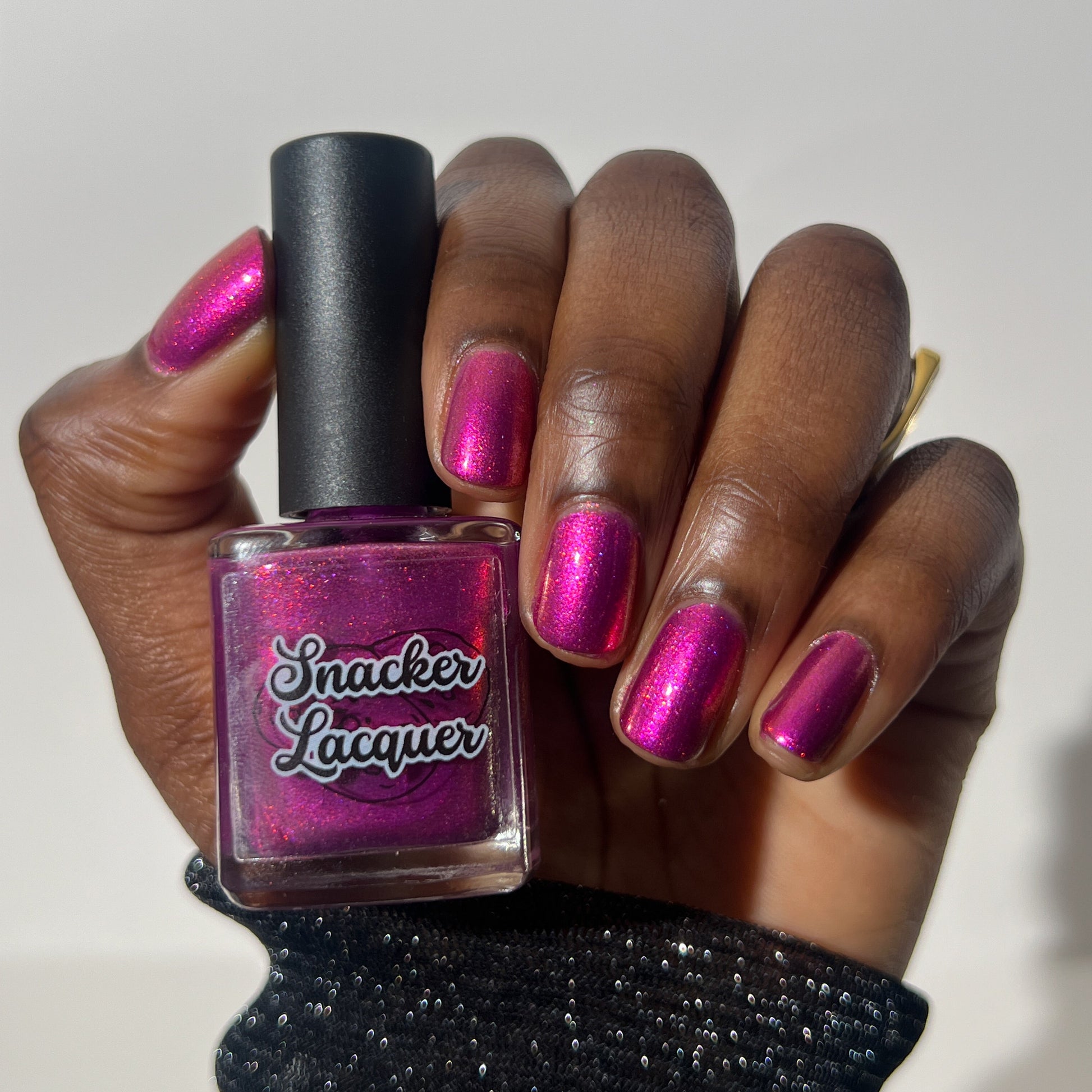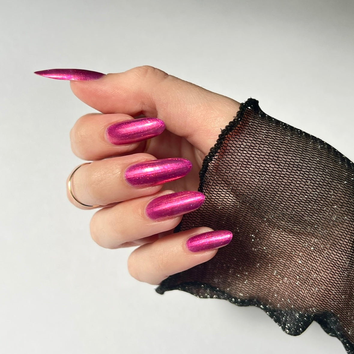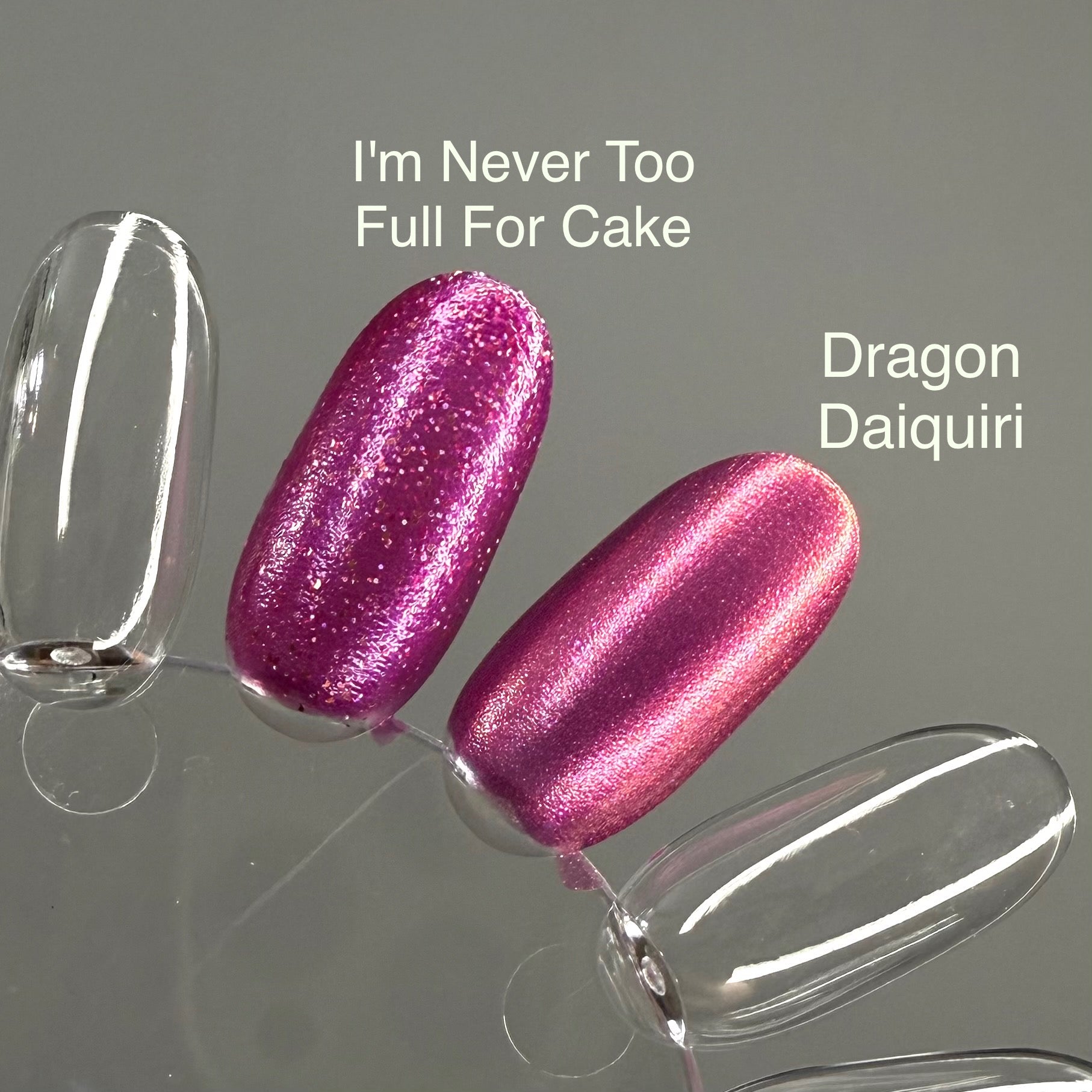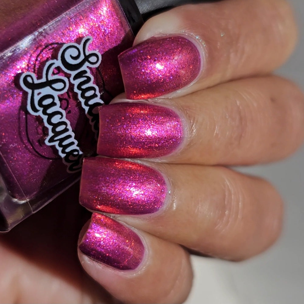 Dragon Daiquiri (Limited Edition) is described as a fierce and fiery fuchsia polish, blazing with the heat of dragon breath. Its shimmer within morphs from molten orange to twilight purple/blue, like scales glinting in flight across a sunset sky.