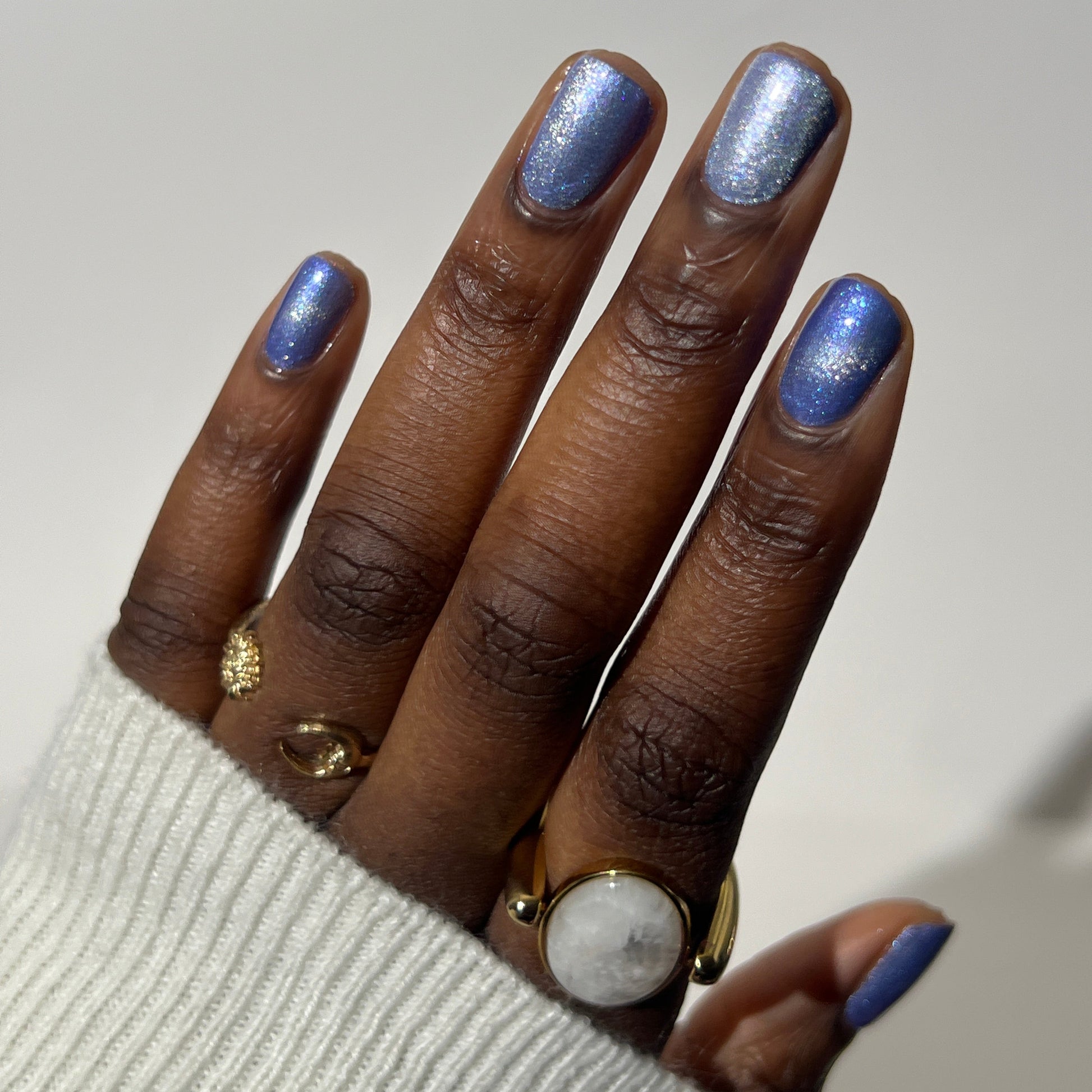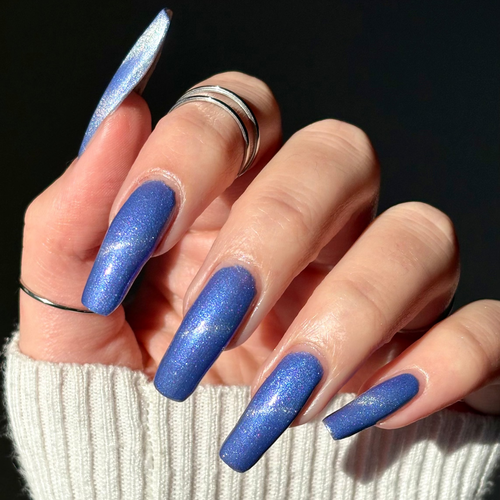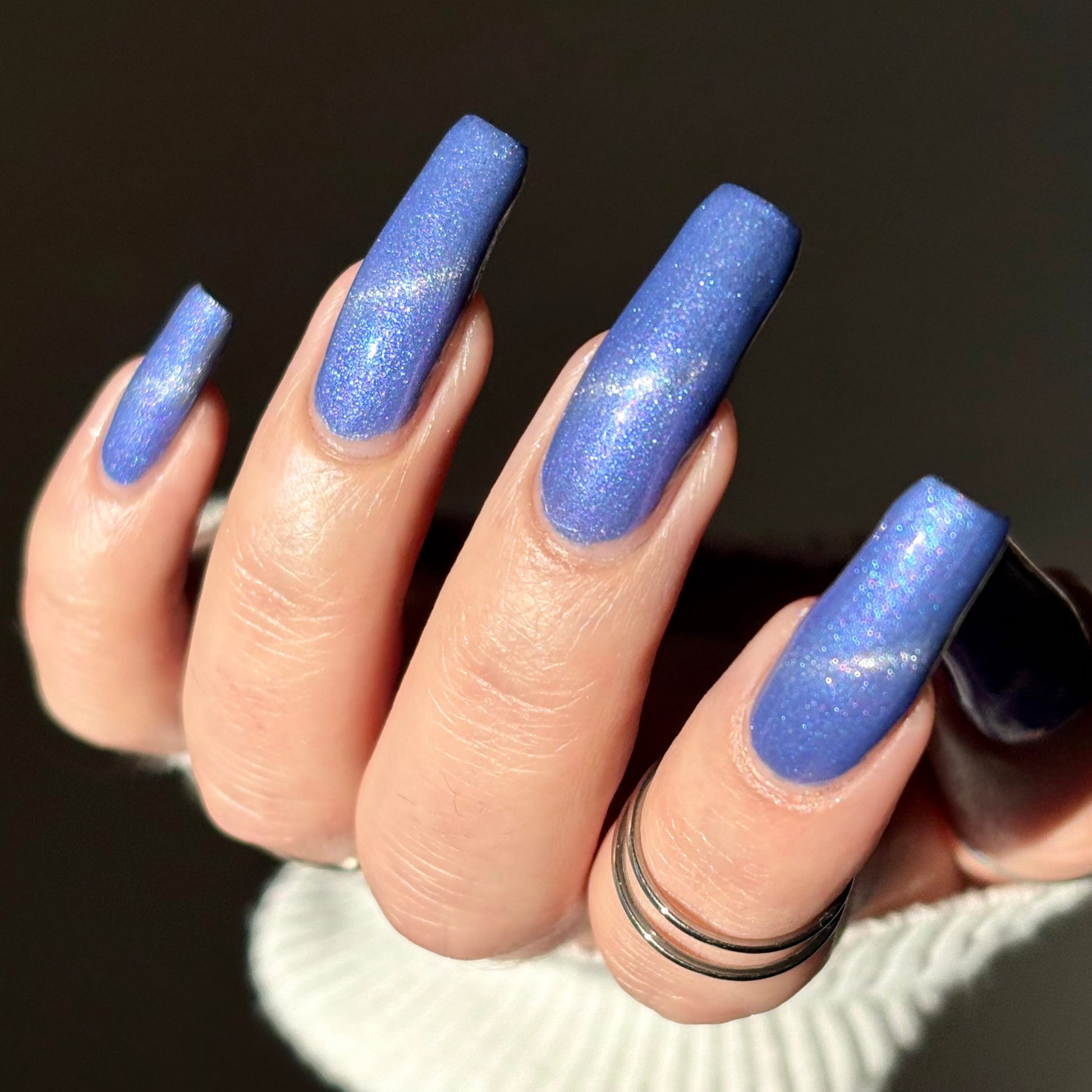 Pegasus Paloma (Limited Edition) is described as a celestial periwinkle polish touched by the wings of a Pegasus. It gleams with purple shimmer and a frost-kissed silver-magnetic glow. (The magnetic property in this polish is made to subtle, for those that don't want to magnetize the polish).