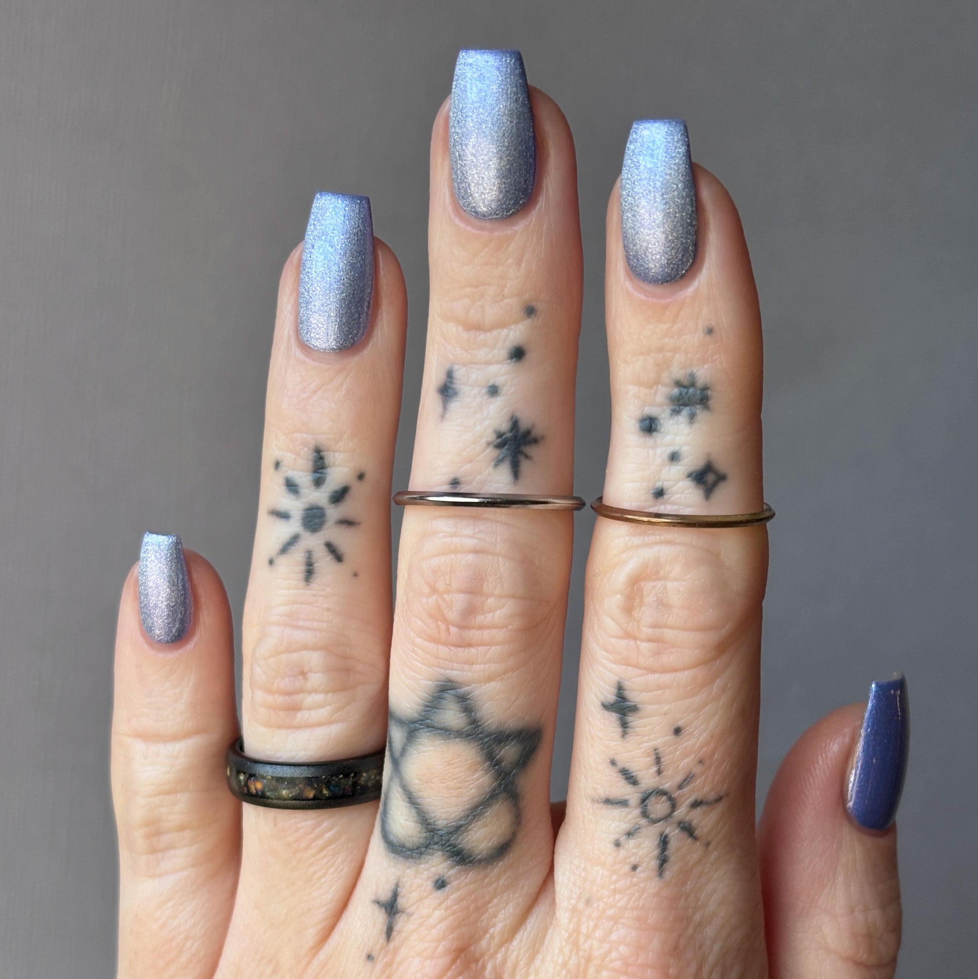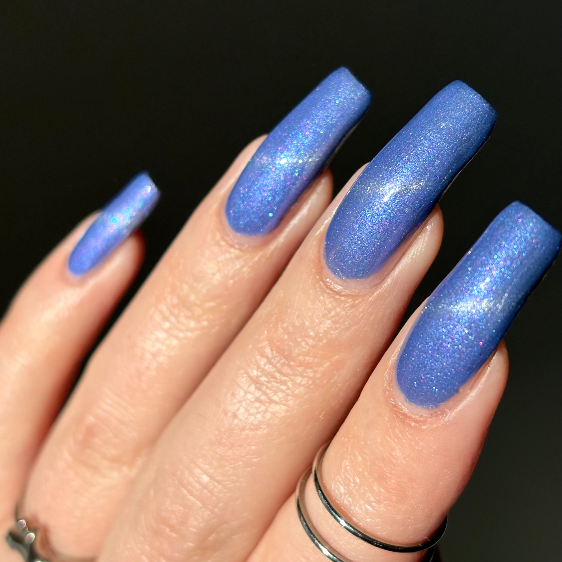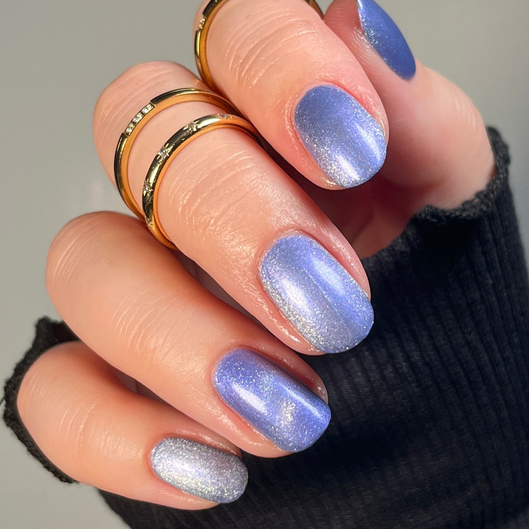 Pegasus Paloma (Limited Edition) is described as a celestial periwinkle polish touched by the wings of a Pegasus. It gleams with purple shimmer and a frost-kissed silver-magnetic glow. (The magnetic property in this polish is made to subtle, for those that don't want to magnetize the polish).