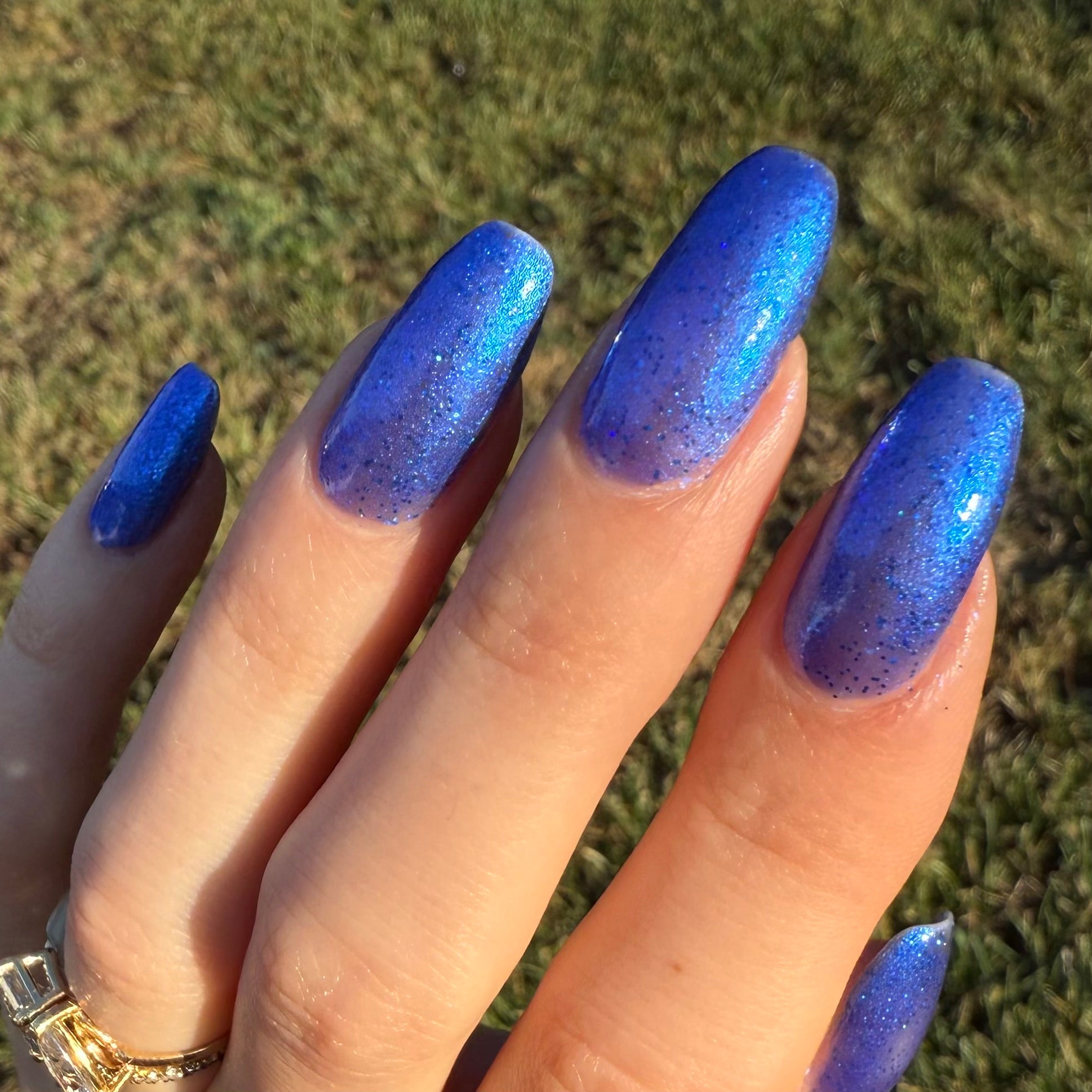 Savory Sapphire (Small Batch) is a blue polish with sapphire blue holographic glitter and shimmer. This polish is inspired by September's birthstone. This polish is made in a Small Batch and will not be restocked once it sells out!